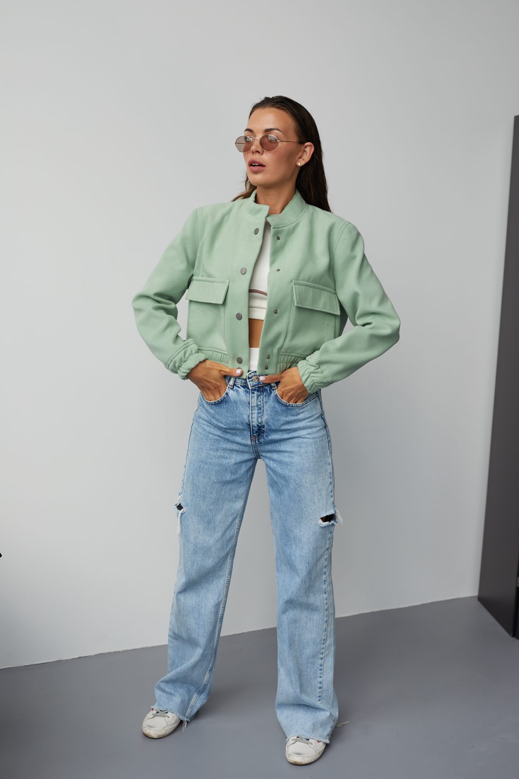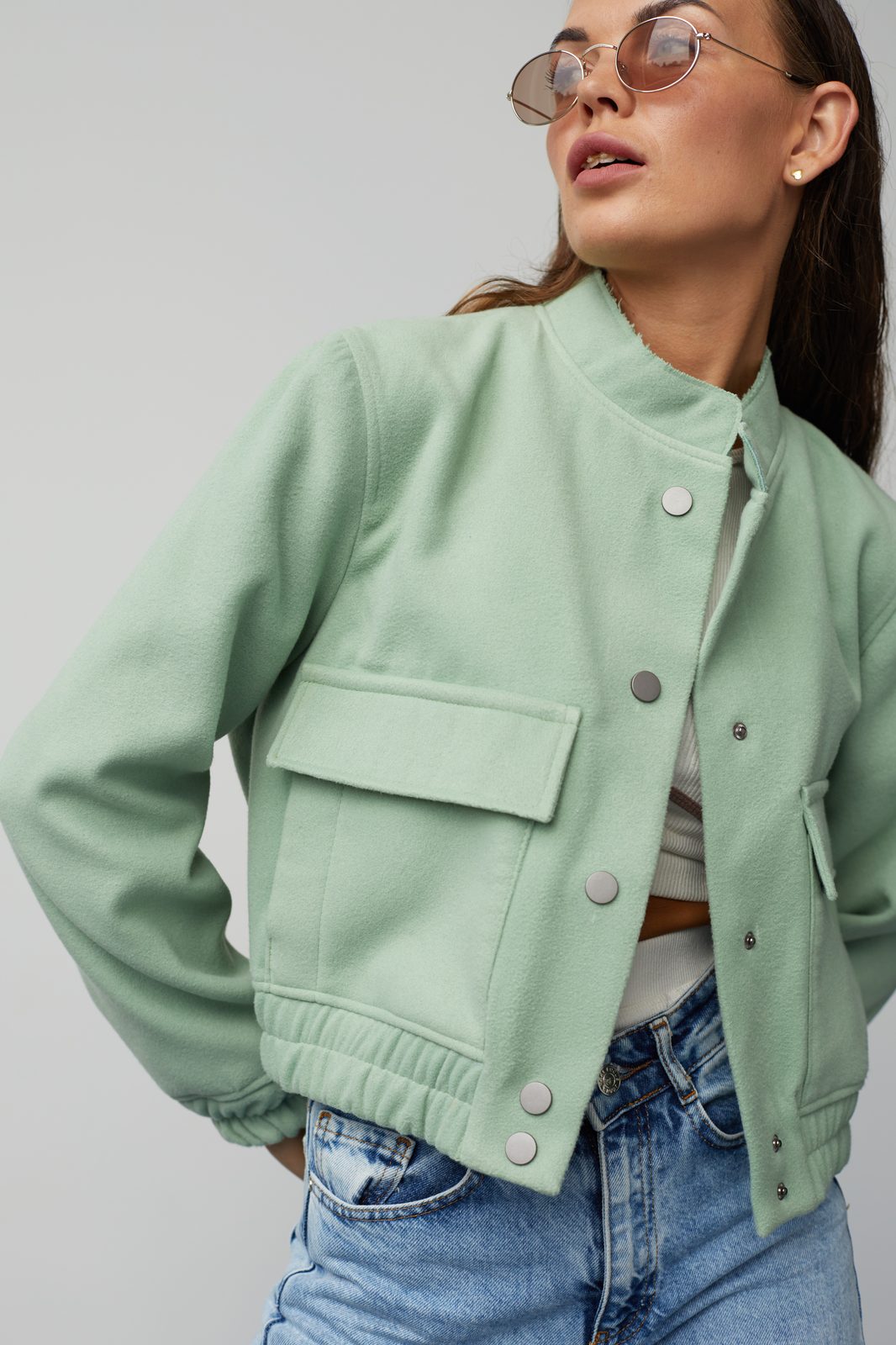 OLIVE WOOL BOMBER Modern classic in a premium execution. The wool bomber is the perfect balance between structure and comfort. Minimalism that stands the test of time. Size: One Size Material: 100% coat wool